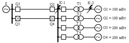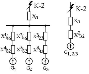 Для расчета Iкз, min возьмем точку короткого замыкания К-2 при отключенной линии подпитки и одного генераторного блока.