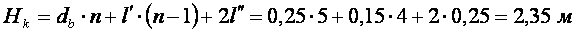 Вк=2+0,15=2,15м