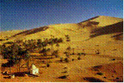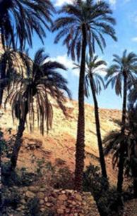 Остальную часть страны занимает пустыня Сахара. Средняя отметка высоты в Сахаре – ок. 460 м. В районе массива Ахаггар (Хоггар) вблизи южной границы Алжира находится высочайшая вершина страны гора Тахат – 2908 м. Бóльшую часть Сахары занимают щебнистые и галечниковые пустыни (хамады и реги), а приблизительно 1/4 часть – песчаные пустыни (эрги). Днем жарко, порой температура достигает 35°, но ночи прохладные. Осадки крайне редкие. В оазисах, в условиях постоянного орошения, растет финиковая пальма.