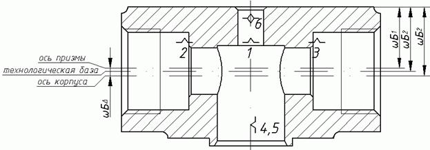 Из чертежа видно, что при установке технологическая база не совпадает с осью корпуса и призмы, появляется погрешность базирования заготовки.