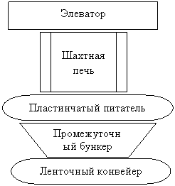 Фракции 20…40 и 40…70 раздельно подаются в два промежуточных бункера откуда при помощи ленточного питателя и элеватора поступают на обжиг в шахтную печь. Фракция < 20 не пригодна для обжига в шахтной печи и поэтому идет в отходы.