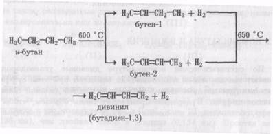 1. Основным промышленным способом получения дивинила является дегидрирование соответствующих бутан-бутиленовых смесей над катализатором (Сг20з):