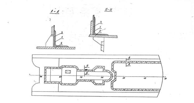 1 – стеклопластик; 2 – настил верхнего мостика; 3 – ватервейс; 4 – стенка опоры.