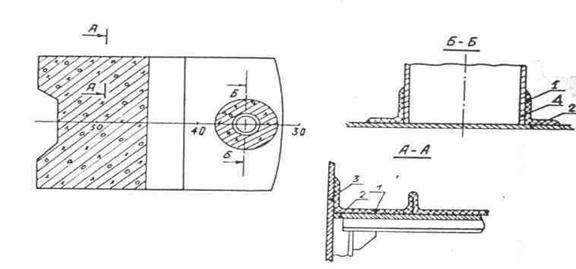 1 – стеклопластик; 2 – настил шлюпочной палубы; 3 – стенка рубки.