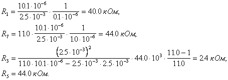 При указанном коэффициенте М сопротивления резисторов получаются равными: