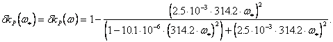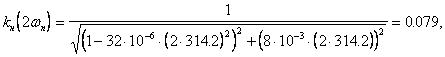 Коэффициент передачи фильтром гармонической составляющей удвоенной промышленной частоты