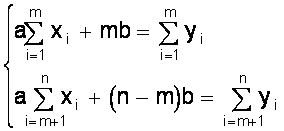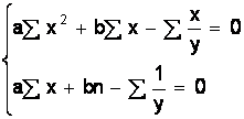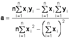 Вычисляя из n опытов необходимые суммы и производя указанные действия, получаем величину коэффициентов а, b.