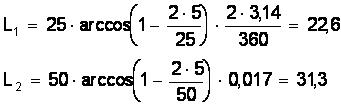 Далее вводим следующую промежуточную ось ( и соответственно переменную ) L = C ×tg wi. Задаваясь величинами угла wi и С можно определить положение помеченных линий. Например, при w = 45°, С = 50