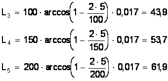 Рассмотрим ²помеченную² линию t = 5 мм. В качестве переменного параметра принимаем диаметр фрезы D. При D = 25; 50; 100; 150; 200 мм соответственно имеем