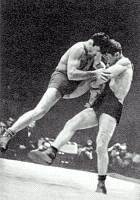 Примером снимка, в котором нарушены классические принципы равновесия, может служить фото 53 (Е. Шматриков "Борцы"). Фигуры спортсменов расположены в правой части кадра и сюда же направлено движение. Вертикальная ось основной группы, таким образом, резко смещается от центра вправо, равновесие композиции нарушается, она теряет свою устойчивость. Но это, конечно, не случайность, а сознательно примененный автором композиционный прием. Фотограф знает, что равновесие сообщает рисунку устойчивость. Следовательно, потеря равновесия, выход из устойчивого положения содержат в себе элемент динамизма. Значит, неуравновешенная композиция должна помочь передаче движения и сделать снимок более динамичным. Так оно и есть: потеря композиционного равновесия на фото 53 усиливает эффект внутрикадрового движения. Эффект подчеркивается также уклоном линии горизонта.