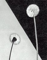 Но вот перед нами фото 54. Тут уже не скажешь, что у автора не было замысла, что приемы построения изображения остались неиспользованными: каждому ясно с первого взгляда - снимок построен на контрастах черного и белого. Картинная плоскость разделена по диагонали и покрыта наполовину ярким белым тоном, наполовину - глухим черным. На белое проецируется темный силуэт одуванчика, на черное - яркий белый шарик цветка. Все ясно, четко, но . схематично. По существу, содержанием снимка стал сам композиционный прием, живая эмоция заменена выстроенным, стилизованным изображением . Мы можем, конечно, использовать такие изображения в качестве декоративного рисунка, плаката и пр. Они также служат учебными упражнениями при изучении основ композиции. Но вряд ли мы сможем признать их законченными художественными картинами. Эти упражнения демонстрируют известную подготовленность фотографа, его исполнительское мастерство, что иногда подкупает зрителей. Но как бы эффектен и красив ни был подобный кадр, он не удовлетворит требовательного зрителя. Ибо за внешним рисунком ничего нет, только сочетание линий и тонов . Трудно говорить здесь о глубине мысли, о жизненных наблюдениях, о художественном образе.