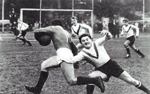 · размещение главного объекта изображения в центре картинной плоскости или близко к нему (фото 38, Е.Шматриков "Регби").