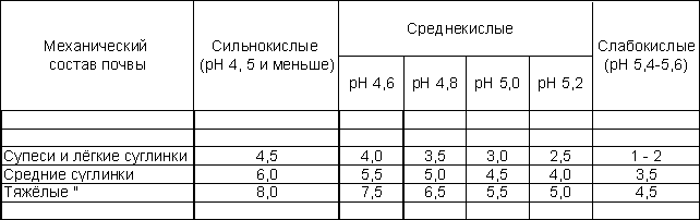 Дозы извести (СаСО3) в зависимости от рН солевой втяжки и механического состава почвы в т СаСО3 на 1 кг