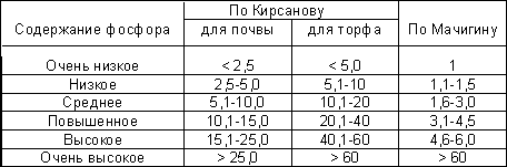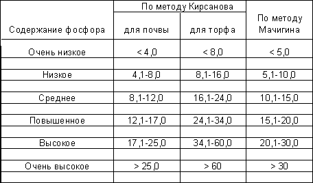 Шкала обеспеченности почв доступными фосфатами (в мг на 100 г почвы)