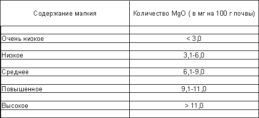 Магний. Некоторые почвы особенно дерново-подзолистые, песчаные и супесчаные, содержат мало магния. Если общее количество его в суглинистых почвах 1—2%, то в песчаных всего 0,05— 0,1% MgO. Основная часть магния, находящегося в почвах, входит в силикаты и трудно доступна растениям. Водорастворимый и обменный магний составляет не более 10% общего его запаса, а в легких почвах — 0,5—2,5 мг на 100 г почвы. Между тем магний вымывается из почвы осадками, используется растениями (зерно< вые выносят 10—15 кг Mg0 на 1 га, а картофель, клевер, сахарная свекла—в 3—5 раз больше). Особенно энергично магний вытесняется из почвы при внесении аммиачных удобрений, в результате чего становится совершенно необходимым пополнение запасов этого элемента применением удобрений. По содержанию обменного магния можно судить о степени обеспеченности магнием, о нуждаемости почв в магниевом удобрении (табл. 10).