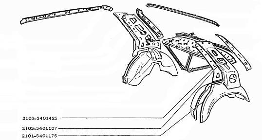 : для наружных панелей оперения толщиной 0,7 мм; для переднего пола и крыши - 0,9 мм; для брызговиков передних крыльев, арок задних колес, лонжеронов и поперечин пола-1,0 мм; для сильно нагруженных деталей (передних лонжеронов, центральных стоек) - 1,5 мм. Различные мелкие детали кузова (усилители, соединители, кронштейны, надставки) отштампованы из стали толщиной 0,8-2,5 мм.