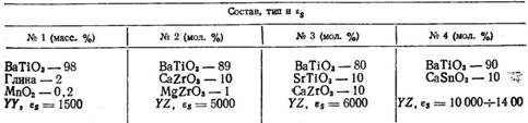 В табл. 7-3-1 приведены составы шихты, предназначенной для изготовления керамических конденсаторов с высокой εs. Если использовать эти материалы, то, очевидно, исключается операция составления шихты.