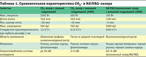 Приведенная ниже табл. 1 содержит основные величины - мощность и длину волны лазерного излучения, а также такие зависящие от них показатели, как качество изображения, производительность, характер формных материалов и др.
