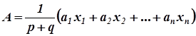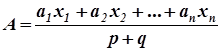 или, если использовать косую черту к видуA = (a1x1 + a2x2 + … + anxn)/(p + q)