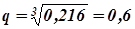 Согласно условию, имеемР(А) = 0,784. Поэтому0,784 = 1 - q3,