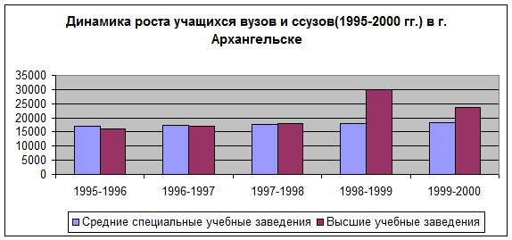 По статистическим данным1 число обучающихся в высших и средних специальных учебных заведениях города Архангельска постоянно увеличивается.