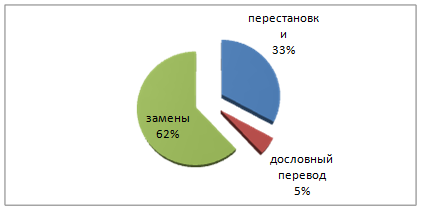 Алгоритмы перевода остальных проанализированных нами заголовков совпадали с алгоритмами, рассмотренными выше. При этом выделенные грамматические трансформации распределились следующим образом: