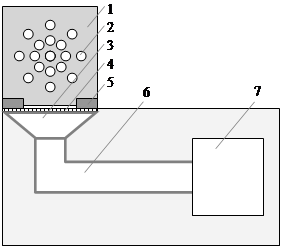 Подложку устанавливаем на крышку 1 рис. 16, с отверстиями вакуумного зажима 2, крышка 1 на шарнирах 5, для загрузки откидывается на угол 1800. СВЧ генератор 7 на базе магнетрона передает излучение по волноводу 6 в рупорную антенну 3 с корректирующей диэлектрической линзой (она применяется для создания плоского фронта СВЧ волн). Закрываем крышку 1 и подложка оказывается над рупорной антенной 3 отделенной от нее защитным экраном 4