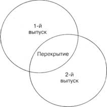 Очевидно, что охват аудитории будет зависеть как от рейтингов носителей, так и от перекрытия аудиторий. Например, если зона 1 — рейтинг (аудитория) газеты1 = =15%, зона 2 — аудитория газеты2 - 8%, а кросс-парное перекрытие этих носителей — сектор 4 = 3%, то ОХВАТ этими двумя носителями (при одном включении в каждый) будет равен 15 + 8 - 3 = 20% всего населения, но зато 3% населения прочтет ОБА носителя, т. е. ОХВАТ с частотой 2 = 3%. Схожая ситуация наблюдается и для аудитории одного носителя, выходящего регулярно. Даже если рейтинг носителя одинаков (например, 16%) — это не значит, что его все время смотрят одни и те же люди. Часть аудитории меняется, а часть остается постоянной. При этом постоянство аудитории определяется коэффициентом внутреннего перекрытия.
