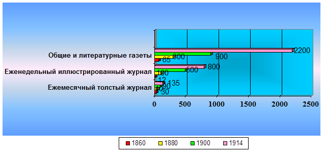 Таким образом, дореволюционный период характеризовался в основном становлением российских печатных изданий, а также печатной рекламы. Но главным приоритетом лучших газет и журналов являлась не коммерческая, а общественно-политическая тематика публикаций.