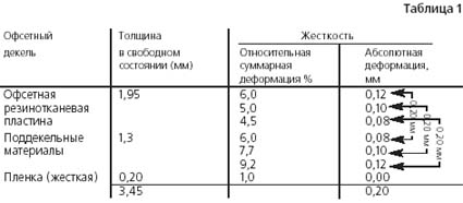 Соотношение жесткости (величины абсолютной деформации) пластины и поддекеля могут изменяться в зависимости от наличия материалов с различной жесткостью, но суммарная абсолютная деформация декеля должна быть равна 0,20 мм (см. табл. 1).