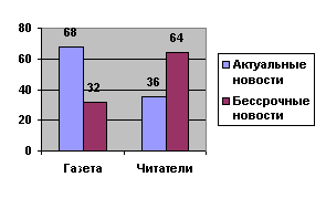 Как правило, газеты предпочитают актуальные новости, читатели – бессрочные. Можно заключить, что читатели не ищут в газетах немедленного освещения событий, поскольку получают текущую информацию через другие средства информации, такие, как телевидение, радио и Интернет, которые быстрее передают новости. Критерий новостной ценности "новизна / актуальность", похоже, больше не выступает в качестве ценности журналистского качества в процессе отбора событий для печатных средств информации. Кроме того, это указывает на изменившуюся роль газеты, превращающейся в средство более глубокого анализа информации.