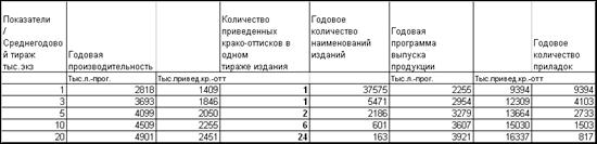 Расчеты производятся для 5 заданных величин среднегодовых тиражей изданий. Результаты представлены в таблице 2.1