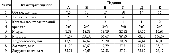 Данные для построения план-графика работы печатного цеха предприятия