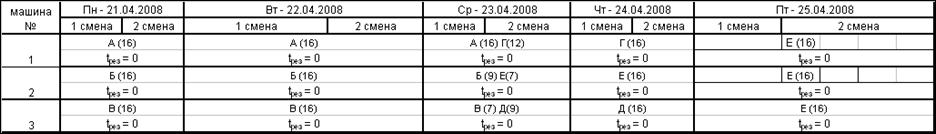 6. производят уплотнение графика и расчет недоиспользованного времени.