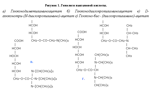 Пангамовая кислота представляет собой эфир D-глюконовой кислоты и диметилглицина с молекулярной массой 281.