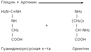 По теории Борсука и Дубнова синтез креатина проходит в две стадии. На первой стадии, которая проходит в почках, из аргинина и глицина образуется гуанидиноуксусная кислота, затем в печени гуанидиноуксусная кислота подвергается метилированию (вторая стадия). Последовательность синтеза креатина была подтверждена опытами с изотопами в работах Блоха и Шенгеймера (Bloch, Shoengheimer, 1941) и ряда других исследователей.