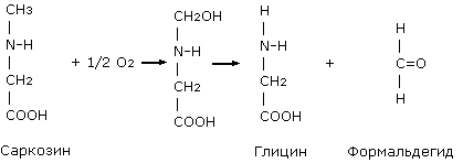 Предположительно характерными для пангамовой кислоты являются реакции окислительного деметилирования, протекающие аналогично подобной реакции саркозина