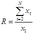 При использовании этого метода в расчете учитывается вся информация ряда. Расчет базируется на предпосылке о том, что сумма фактических уровней динамического ряда или суммарный рост за период должен быть равен сумме уровней, полученных расчетным путем исходя из начального уровня ряда и среднего темпа роста (