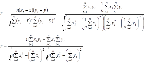 Связь двух факторов тем больше, чем теснее располагаются точки около некоторой линии, отображающей график зависимости одной случайной величины от другой. Если все точки корреляционного поля попадают на эту линию, то теснота связи окажется максимальной, и получается функциональная зависимость двух случайных величин. Для количественного определения тесноты связи между двумя случайными величинами в случае линейной корреляции используют коэффициент корреляции, который может быть определен по двум следующим формулам: