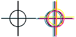 Наибольшее допустимое смещение между центрами изображения любых двух распечатанных цветов не должен превышать половины ширины самого мелкого растра для всех четырех цветоделенных пленок.