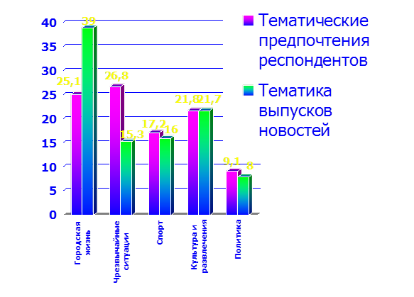 Соотношение тематических предпочтений респондентов с тематикой новостных выпусков «Радио «Сибирь - Омск»