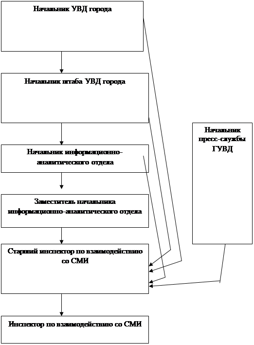 Рисунок 1 – Схема подчинения инспекторов по взаимодействию со СМИ вышестоящему руководству