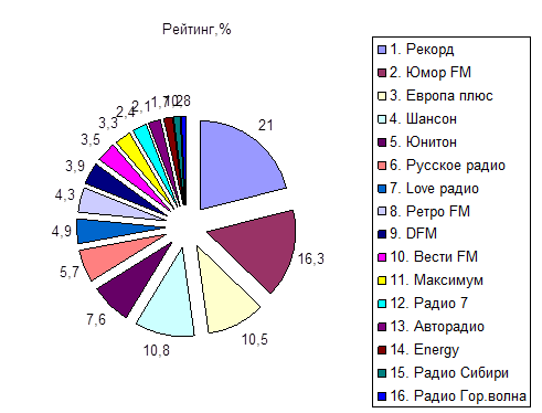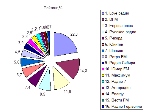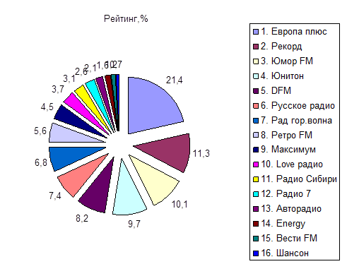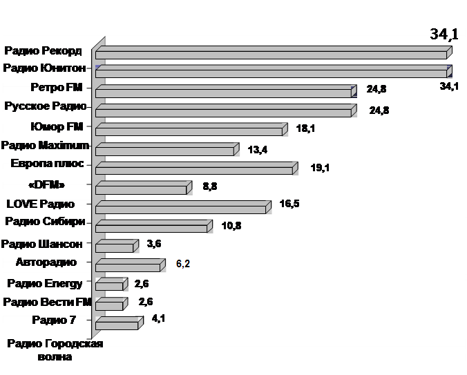 1. Коммерческие радиостанции по охвату аудитории в целевой группе 14 – 39 лет