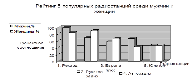 2. Популярность коммерческих радиостанций среди мужчин и женщин