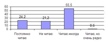 «Иногда» читают газету наибольшее количество опрошенных – 55,5% (165 человек).