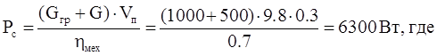 Статическая мощность на валу электродвигателя при подъеме груза Pc [6]: