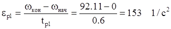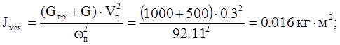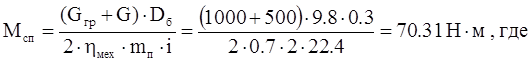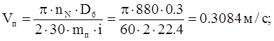 б=(2.mп.Vп)/Dб=(2.2.0.3)/0.3=4 рад/с - скорость вращения барабана.