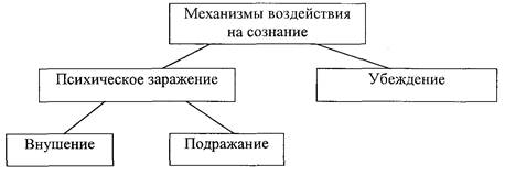 Данные концепции 3. Фрейда и К. Юнга были положены в основу сформулированных позднее социальными психологами методов телевизионного воздействия на сознание телеаудитории. Они схожи с механизмами воздействия на сознание человека, которые изучает общая психология. Их модели можно представить в следующей графической схеме.