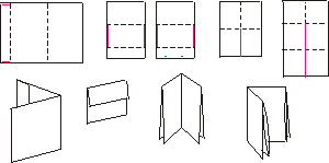 На рис 10 показаны несколько видов продукции, полученных на фальцевальных машинах оснащенных системами склейки. Это могут быть разнообразные папки с клапанами и уголками, заклеенные или открытые конверты, пакеты для фотографий и другой продукции, брошюры, тетради и т.п. Устройства склейки используют до восьми сопел, каждое из которых может наносить клей в нескольких местах листа. Координаты начала и конца каждой клеевой полосы программируется и сохраняется в постоянной памяти машины для повтора заказа.