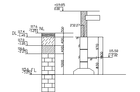 Определяем давление на отметке подошвы фундамента FL=115,6 м